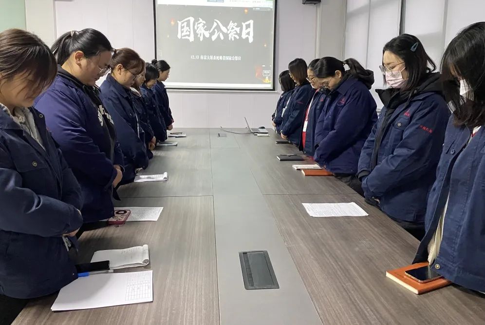 員工肅立默哀,緬懷南京大屠殺的無辜死難者,緬懷所有慘遭日本侵略者殺戮的死難同胞,緬懷為抗日戰(zhàn)爭勝利獻(xiàn)出生命的革命先烈和民族英雄。