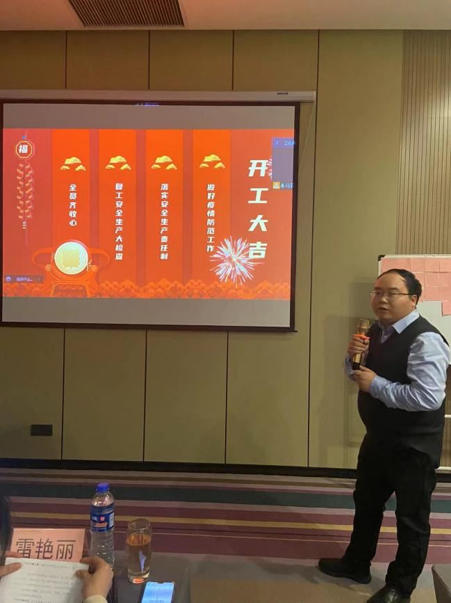 公司副總經理賈總在會議中點明,本次會議既是動員會也是收心會,全體員工要端正態(tài)度,積極克服節(jié)后松散情緒和僥幸麻痹思想,要以飽滿昂揚的姿態(tài)為2022年工作開好頭、起好步。