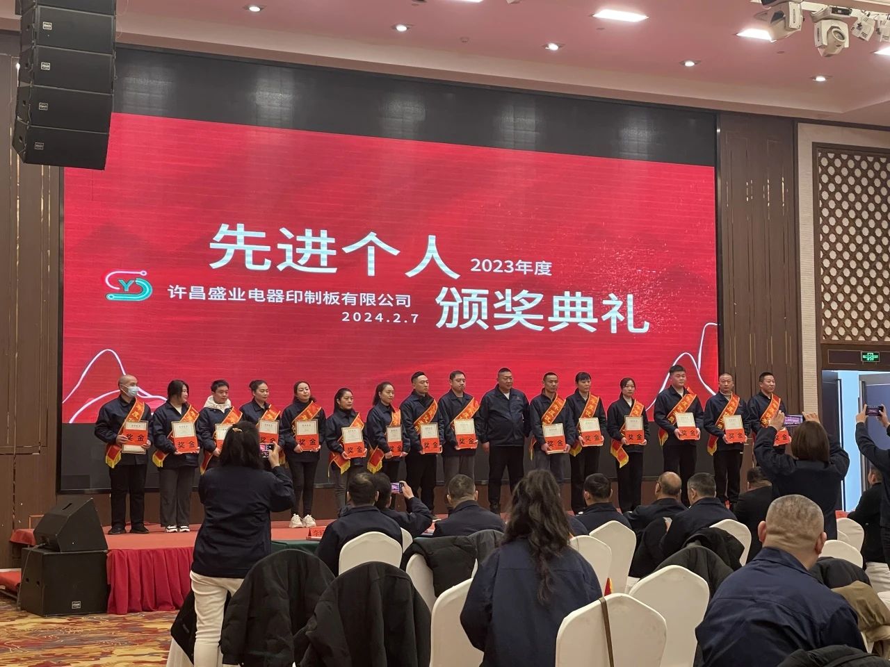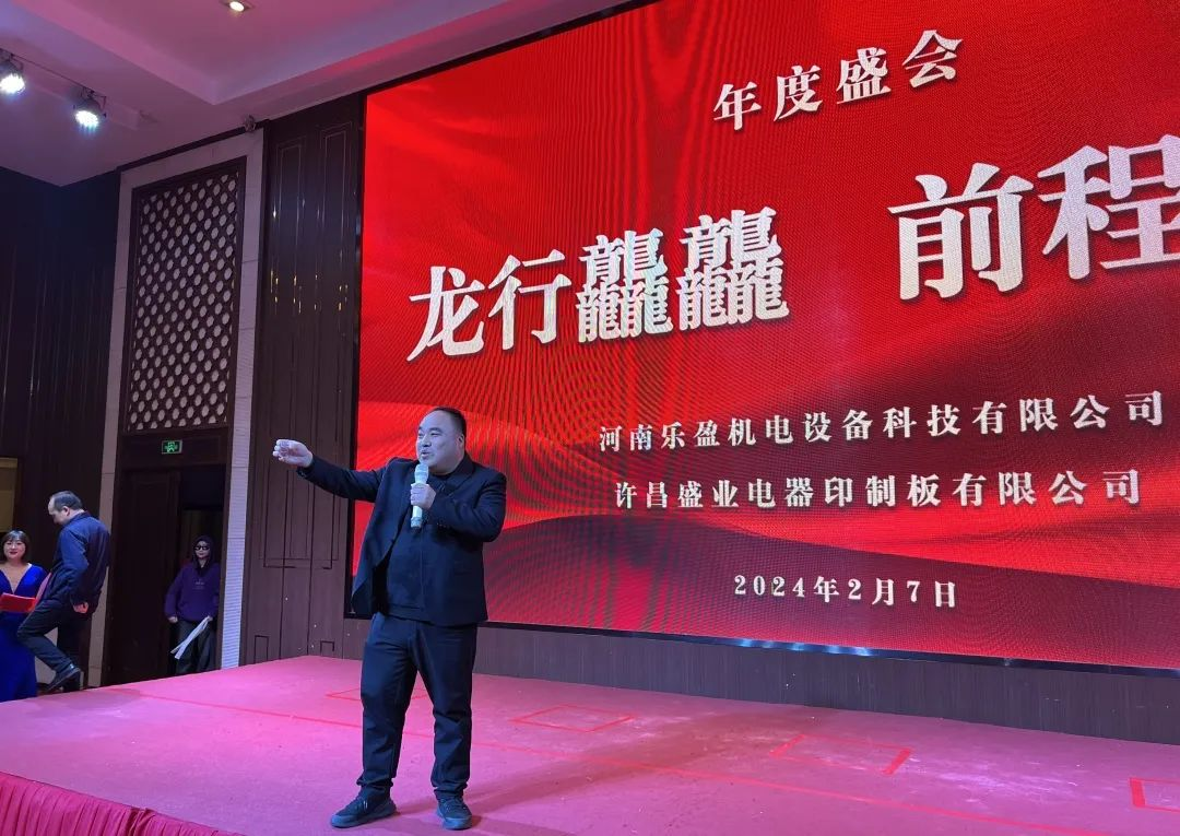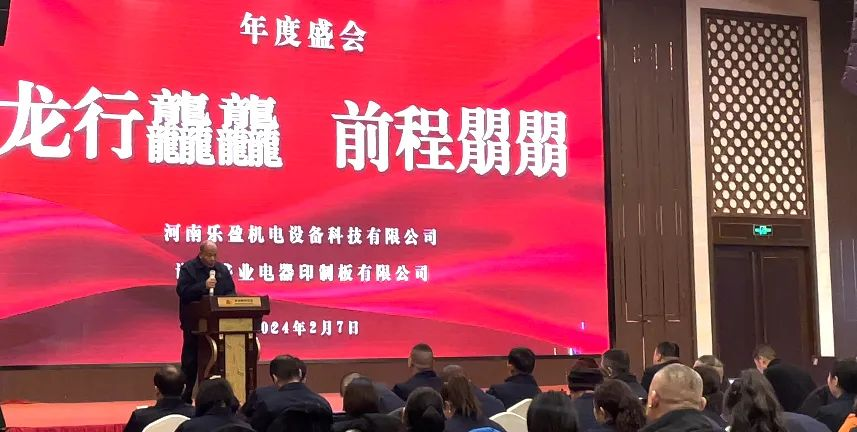 舊朝歲月隨風(fēng)逝,新載希望翹首來。2月7日,由河南樂盈機(jī)電設(shè)備科技有限公司及許昌盛業(yè)電器印制板有限公司成功舉辦了以“龍行龘龘 前程?hào)T朤”為主題的2024年度盛會(huì)。大家齊聚一堂,共同迎接甲辰龍年的到來。
