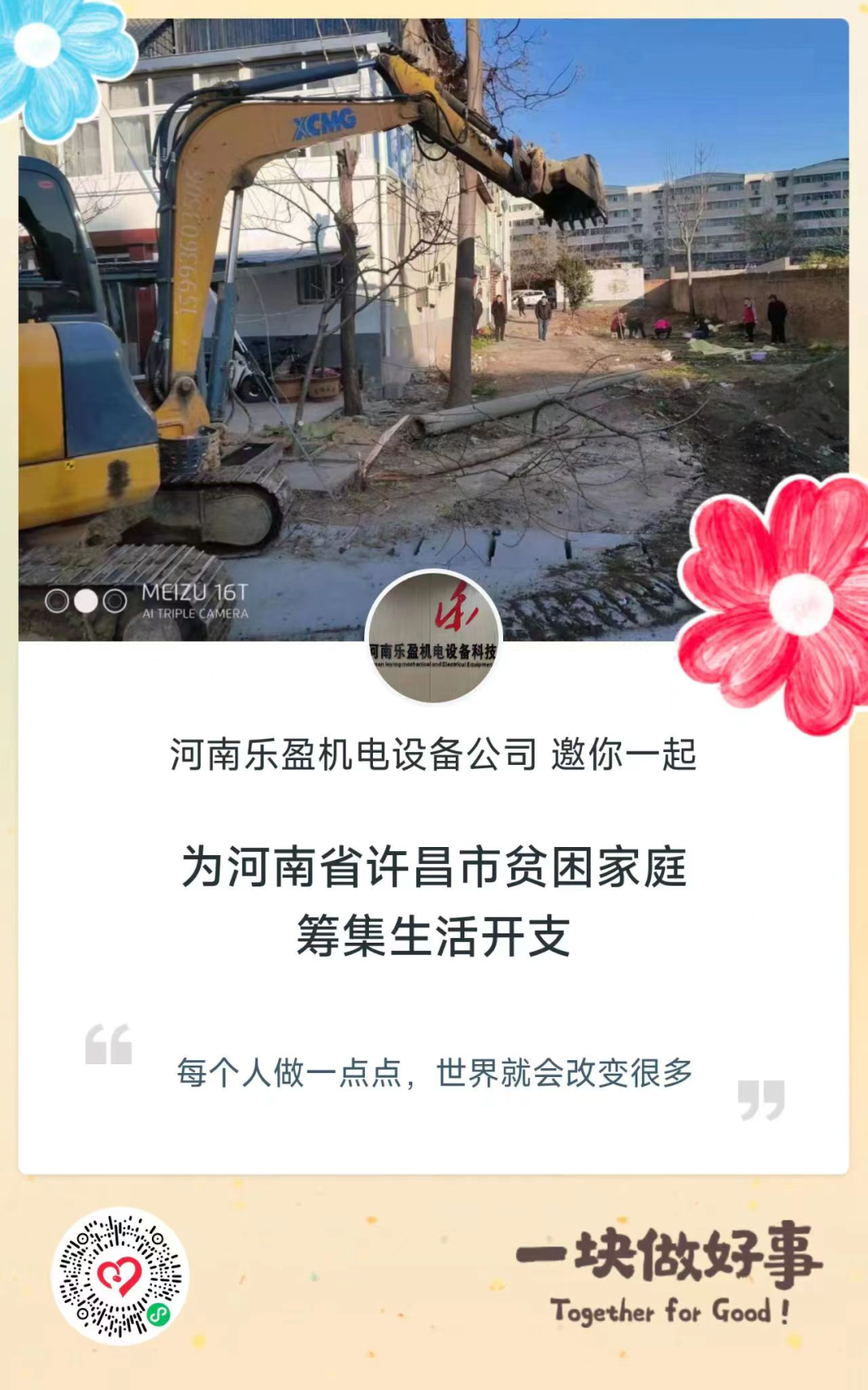 樂善好施、扶危濟(jì)困是中華民族的傳統(tǒng)美德。為傳遞社會(huì)溫暖,弘揚(yáng)公益慈善精神,聚集愛心幫助許昌市貧困家庭,河南樂盈機(jī)電設(shè)備科技有限公司響應(yīng)“99公益日”活動(dòng)號(hào)召,積極參與,開展線上捐贈(zèng)活動(dòng)。